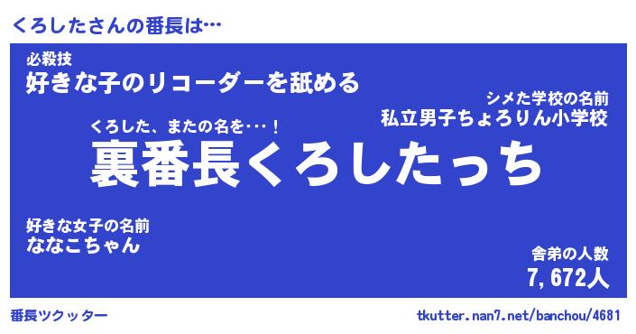 | 意味不明あだ名 | 『ペロリンくろした』『永久保存くろした』 |