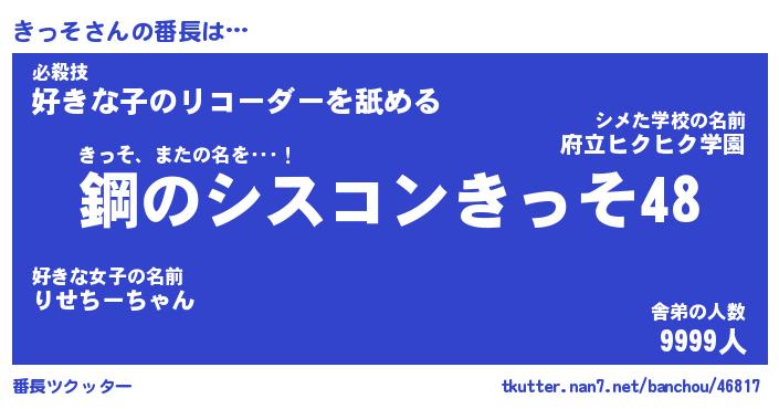 | 伝説のあだ名 | 『封印されしスナイパーきっそ』 |