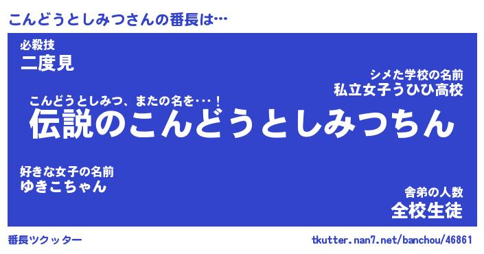 | 肩書あだ名 | 『こんどうとしみつ社長』 |