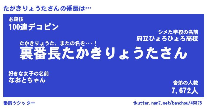 | ヒーロー風カッコイイあだ名 | 『スーパータカキリョウタ』 |