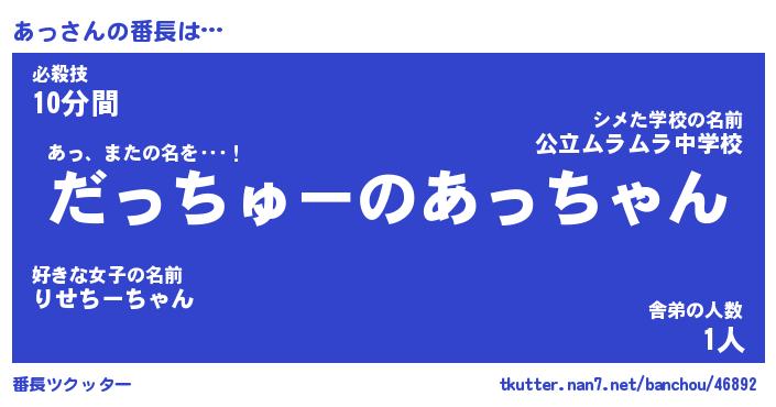 | ヒーロー風カッコイイあだ名 | 『スーパーアッ』『ウルトラあっマン』 |