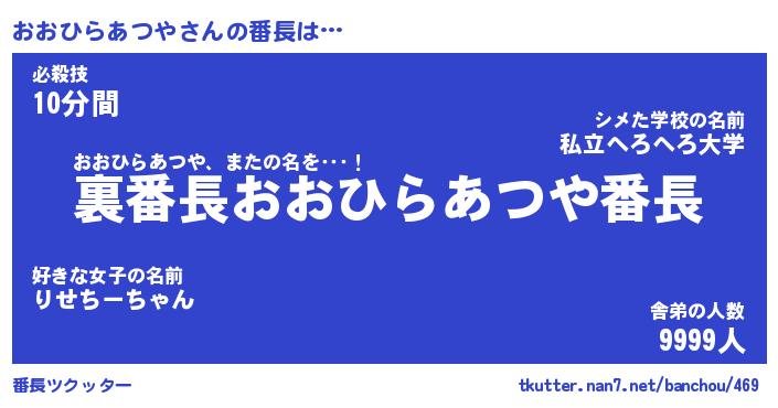 | 意味不明あだ名 | 『ペロリンおおひらあつや』 |