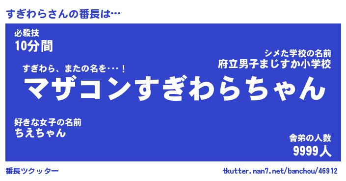 | ファンタジー風あだ名 | 『スギフェル』『エターナルスギワラー』 |