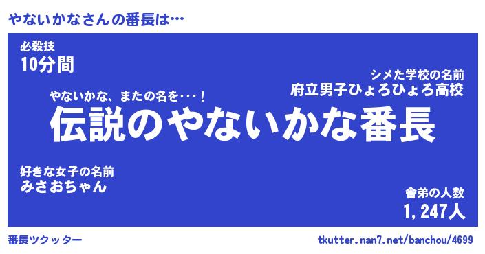 | ピコ太郎風あだ名 | 『ヤコ史郎』『ピヤ十郎』『ヤナ五郎』 |