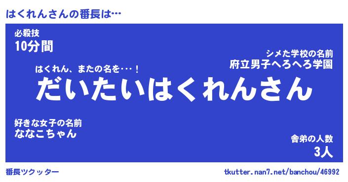 | ピコ太郎風あだ名 | 『ハコ六郎』『ピハ一郎』『ハク八郎』 |