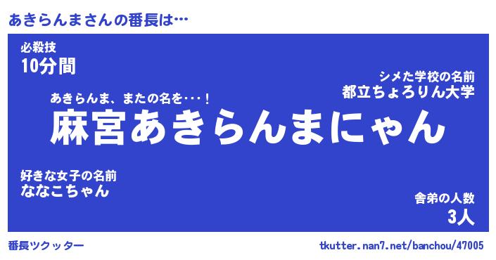 | 肩書あだ名 | 『あきらんま社長』『あきらんま大統領』 |