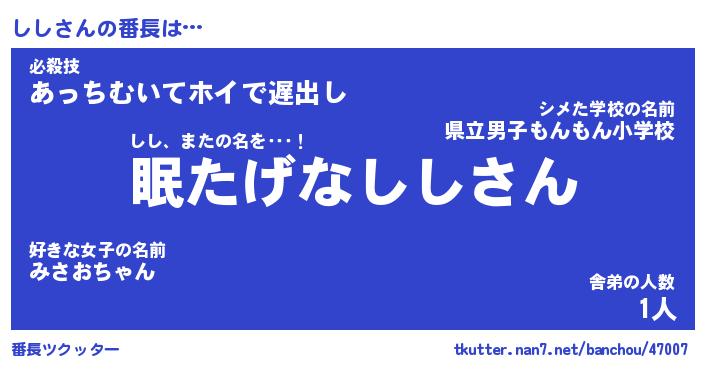 | 肩書あだ名 | 『しし店長』『しし総理大臣』 |