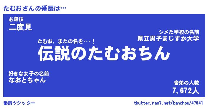 | 肩書あだ名 | 『たむお御曹司』『たむお国家主席』 |