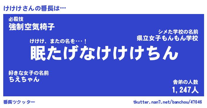 | ヘコむあだ名 | 『けけにー』『牛乳』『けけ太郎』 |
