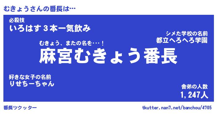 | ファンタジー風あだ名 | 『ムキフェル』『エターナルムキョウー』 |