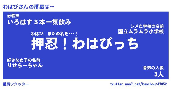 | 肩書あだ名 | 『わはび店長』『わはび大統領』 |