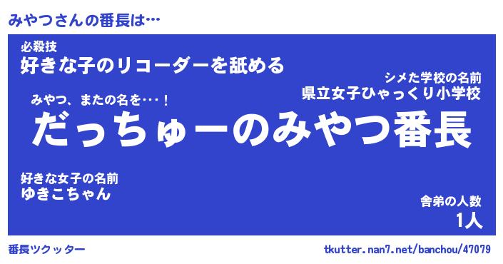 | 意味不明あだ名 | 『ペロリンみやつ』『みやつフォーエバー』 |