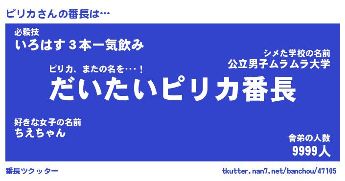 | 肩書あだ名 | 『ピリカ御曹司』『ピリカ大統領』 |