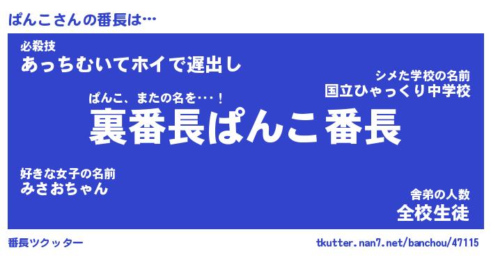 | 肩書あだ名 | 『ぱんこ店長』『ぱんこ総理大臣』 |
