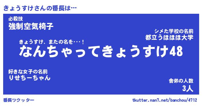 | 肩書あだ名 | 『きょうすけ御曹司』『きょうすけ大統領』 |