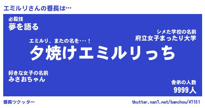 | 意味不明あだ名 | 『ペロリンエミルリ』『永久保存エミルリ』 |