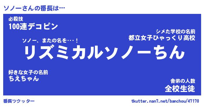 | ファンタジー風あだ名 | 『ソノフェル』『エターナルソノーー』 |