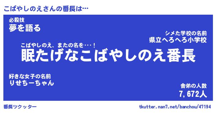 | 2回繰り返すあだ名 | 『こばこば』『ここばば』『にたにた』 |