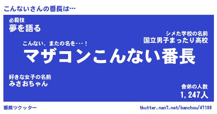 | 意味不明あだ名 | 『ペロリンこんない』『永久保存こんない』 |