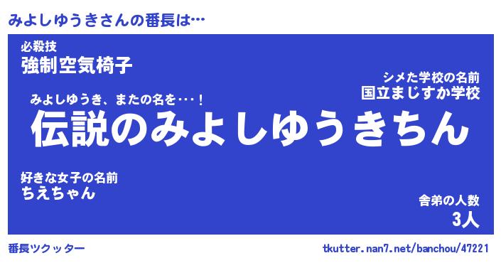 | 伝説のあだ名 | 『伝説のスナイパーみよしゆうき』 |