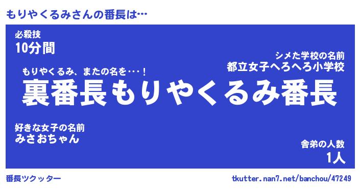 | 肩書あだ名 | 『もりやくるみ御曹司』 |