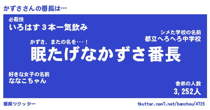 | 意味不明あだ名 | 『ペロリンかずさ』『かずさフォーエバー』 |