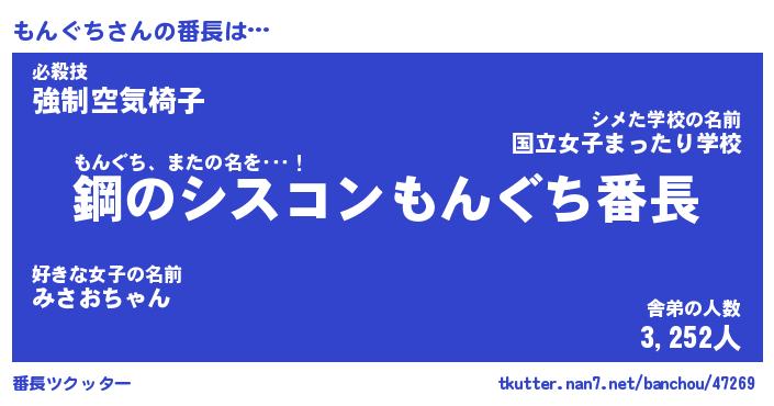 | 2回繰り返すあだ名 | 『もんもん』『ももんん』『ぬめぬめ』 |