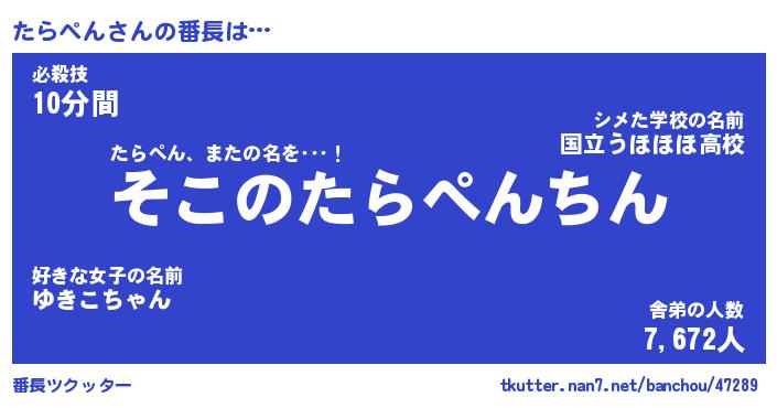 | 意味不明あだ名 | 『ペロリンたらぺん』『永久保存たらぺん』 |