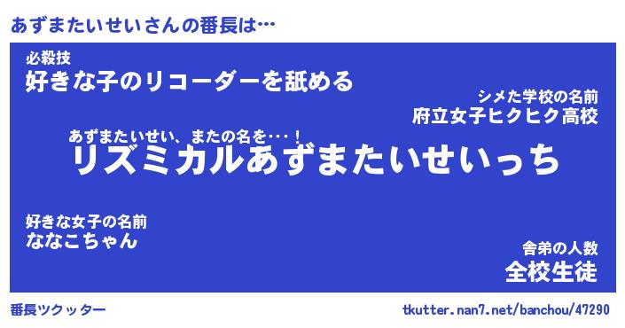 | ポケモン風あだ名 | 『アズチュウ』『アズマダネ』 |