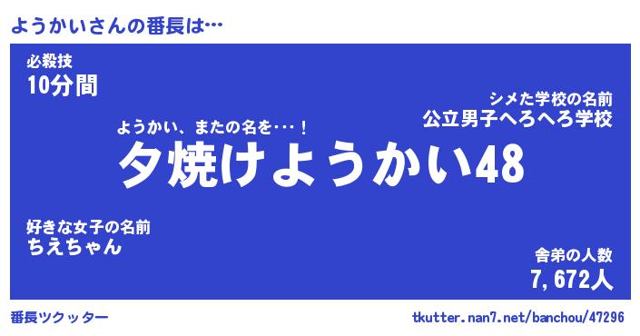 | 意味不明あだ名 | 『ペロリンようかい』『永久保存ようかい』 |