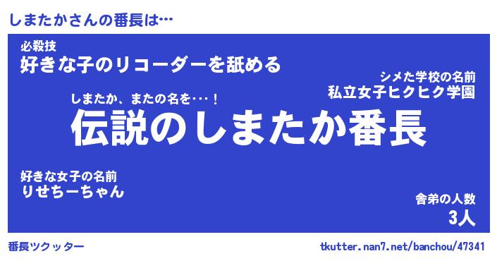 | 意味不明あだ名 | 『ペロリンしまたか』『永久保存しまたか』 |