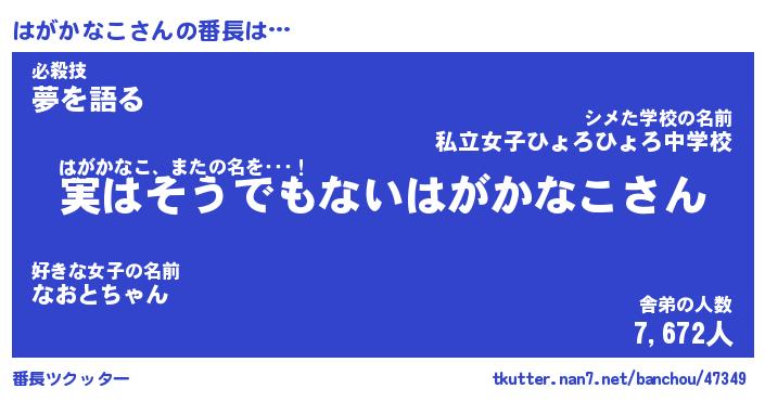 | 肩書あだ名 | 『はがかなこCEO』『はがかなこ総理大臣』 |