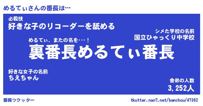 | 肩書あだ名 | 『めるてぃ社長』『めるてぃ大統領』 |