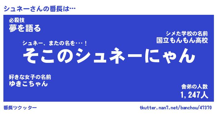 | ヒーロー風カッコイイあだ名 | 『スーパーシュネー』『銀牙騎士シュ』 |