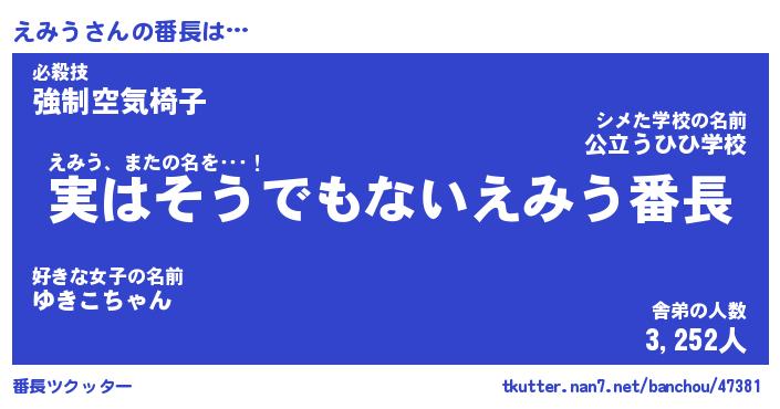 | 肩書あだ名 | 『えみう御曹司』『えみう大統領』 |