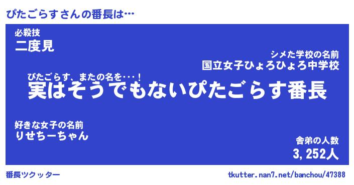 | ファンタジー風あだ名 | 『ピタフェル』『エターナルピタゴラスー』 |