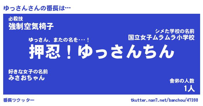 | ポケモン風あだ名 | 『ユッチュウ』『ユッサダネ』 |