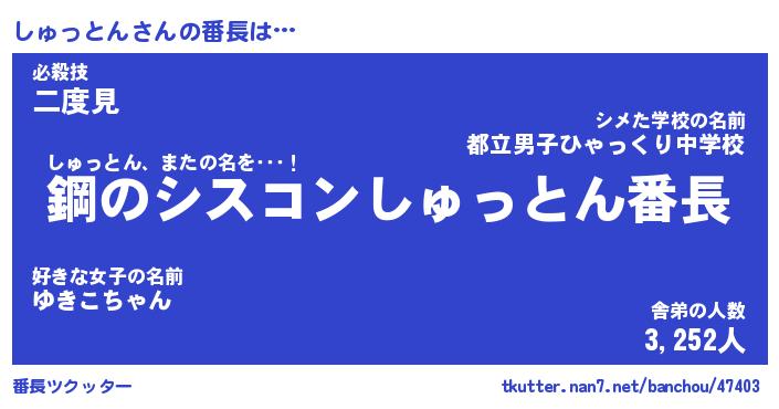 | ヘコむあだ名 | 『しゅにー』『牛乳』『しゅっぺ』 |