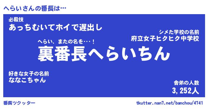 | 伝説のあだ名 | 『不死鳥のスナイパーへらい』 |