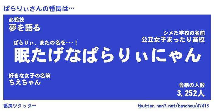 | 意味不明あだ名 | 『ペロリンぱらりぃ』『永久保存ぱらりぃ』 |