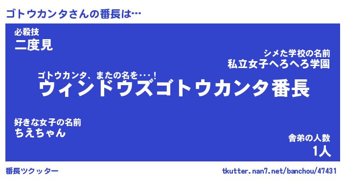 | 肩書あだ名 | 『ゴトウカンタ社長』『ゴトウカンタ団長』 |