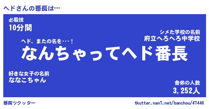 | ピコ太郎風あだ名 | 『ヘコ六郎』『ピヘ三郎』『ヘド史郎』 |