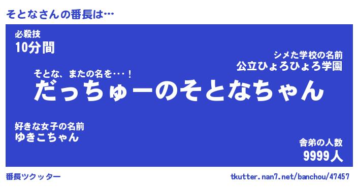 | ヒーロー風カッコイイあだ名 | 『スーパーソトナ』『ウルトラそとなマン』 |
