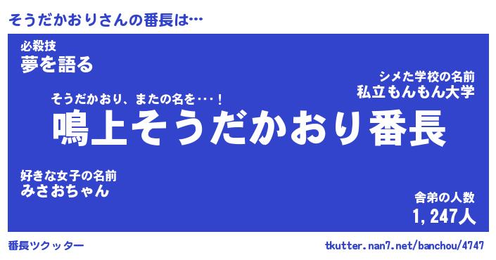 ヘコむあだ名 | 『そうっふぃ~』『豆乳』 |