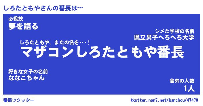 | 肩書あだ名 | 『しろたともや社長』『しろたともや担任』 |