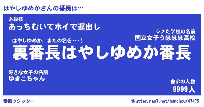 | ヒーロー風カッコイイあだ名 | 『スーパーハヤシユメカ』『天弓騎士ハヤ』 |