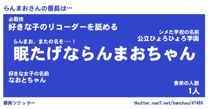 | 意味不明あだ名 | 『ペロリンらんまお』『永久保存らんまお』 |