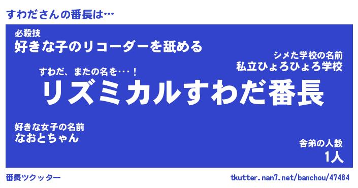 | ヘコむあだ名 | 『すわにゅー』『酢こんぶ』『すわお』 |