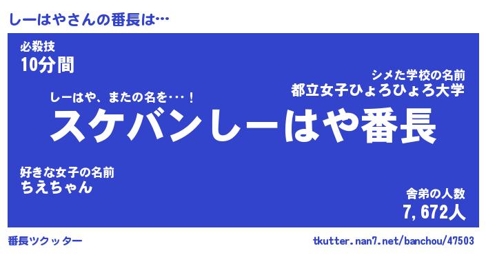 | 意味不明あだ名 | 『ペロリンしーはや』『永久保存しーはや』 |