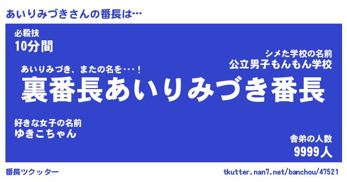 | ヒーロー風カッコイイあだ名 | 『スーパーアイリミヅキ』『天弓騎士アイ』 |